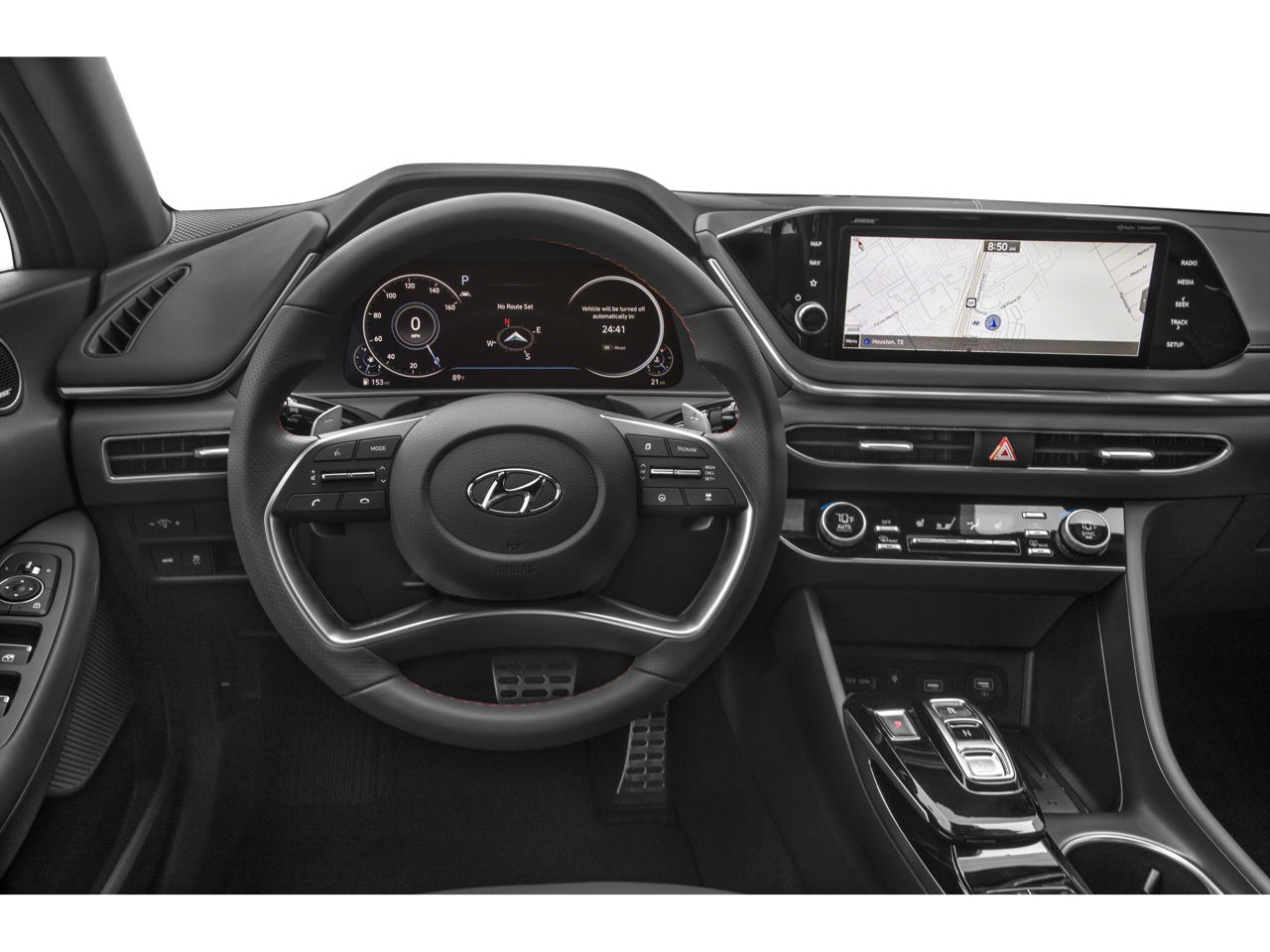 - Radio: AM/FM/MP3/HD/SiriusXM Display Audio w/Nav -inc: 10.25" color touchscreen, Bose premium audio w/12 speakers (1 center channel, 2 dash, 2 front tweeters, 4 door mounted, 2 rear mounted speakers plus 1 rear mounted subwoofer), dynamic voice recognition, integrated Bluetooth®, Blue Link connected car system, Apple CarPlay, Android Auto, USB, diversity antenna for navigation and HERE HD traffic