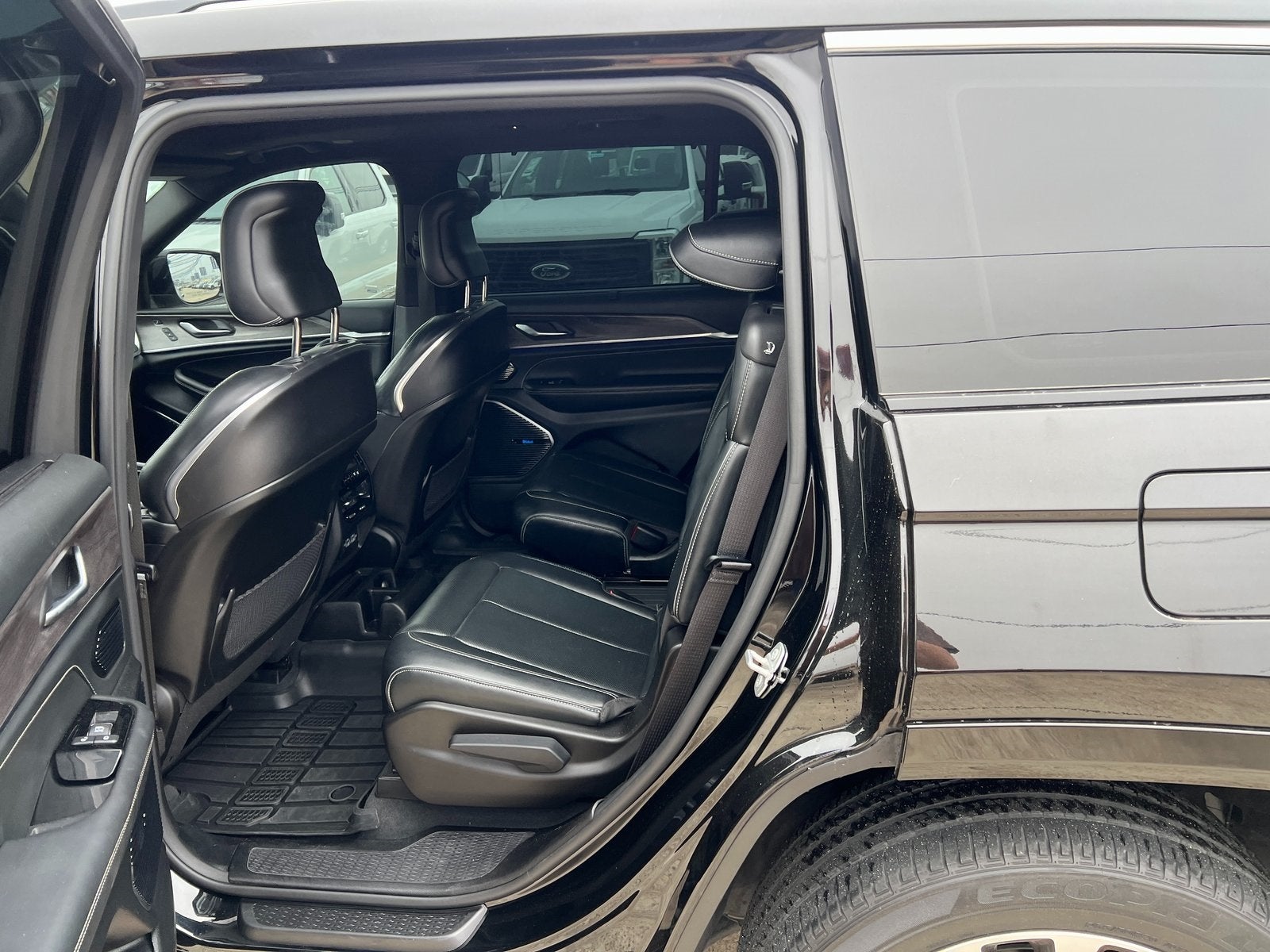 This 2022 Jeep Grand Cherokee L Overland in Diamond Black Crystal Pearlcoat includes the following features: 3.6L V6 24V VVT 8-Speed Automatic 4WD Luxury Tech Group IV (2nd Row Manual Window Shades, ATC w/4 Zone Temp Control, Driver Power Seat Back Massage, Front Passenger Power Seat Back Massage, Nappa Leather Seats (TL), Passenger Seat Memory, Power Adjust 12-Way Driver Seat, Power Adjust 12-Way Front Passenger Seat, Rearview Autodim Digital Display Mirror, and Wireless Charging Pad), Quick Order Package 22N, 19 Speakers High Performance Audio, 950 Watt Amplifier, Active Noise Control System, Auto-dimming door mirrors, GPS Navigation, Navigation System, Spoiler, Turn signal indicator mirrors, USB Host Flip, 10 Speakers, 10.1 Touchscreen Display, 3.45 Rear Axle Ratio, 3rd row seats: split-bench, 4-Wheel Disc Brakes, 4G LTE Wi-Fi Hot Spot, ABS brakes, Adaptive suspension, Air Conditioning, All Radio Equipped Vehicles, Alloy wheels, AM/FM radio: SiriusXM with 360L, Anti-whiplash front head restraints, Apple CarPlay, Audio memory, Auto High-beam Headlights, Auto-dimming Rear-View mirror, Auto-leveling suspension, Automatic temperature control, Brake assist, Bumpers: body-color, Compass, Connected Travel & Traffic Services, Connectivity - US/Canada, Delay-off headlights, Disassociated Touchscreen Display, Driver door bin, Driver vanity mirror, Dual front impact airbags, Dual front side impact airbags, Electronic Stability Control, Emergency communication system, For Details, Visit DriveUconnect.com, For More Info, Call 800-643-2112, Four wheel independent suspension, Front anti-roll bar, Front Bucket Seats, Front Center Armrest w/Storage, Front dual zone A/C, Front fog lights, Front reading lights, Fully automatic headlights, Garage door transmitter, Global Telematics Box Module (TBM), Google Android Auto, GPS Antenna Input, HD Radio, Heated door mirrors, Heated front seats, Heated rear seats, Heated steering wheel, Illuminated entry, Integrated Center Stack Radio, Integrated Voice Command w/Bluetooth®, Knee airbag, Leather steering wheel, Low tire pressure warning, Memory seat, Nappa Leather Seats, Normal Duty Suspension, Occupant sensing airbag, Outside temperature display, Overhead airbag, Overhead console, Panic alarm, Passenger door bin, Passenger vanity mirror, Power door mirrors, Power driver seat, Power Fold Seatbacks, Power Liftgate, Power moonroof, Power passenger seat, Power steering, Power windows, Radio data system, Radio: Uconnect 5 Nav w/10.1 Display, Radio: Uconnect 5 Nav w/8.4 Display, Rain sensing wipers, Rear air conditioning, Rear anti-roll bar, Rear reading lights, Rear window defroster, Rear window wiper, Reclining 3rd row seat, Remote keyless entry, Security system, SiriusXM Radio Service, SiriusXM Satellite Radio, SiriusXM w/360L, Speed control, Speed-Sensitive Wipers, Split folding rear seat, Steering wheel memory, Steering wheel mounted audio controls, Tachometer, Telescoping steering wheel, Tilt steering wheel, Traction control, Trip computer, Variably intermittent wipers, Ventilated front seats, Voltmeter, and Wheels: 20 x 8.5 Machined Face AluminuM. Recent Arrival! Odometer is 21271 miles below market average!